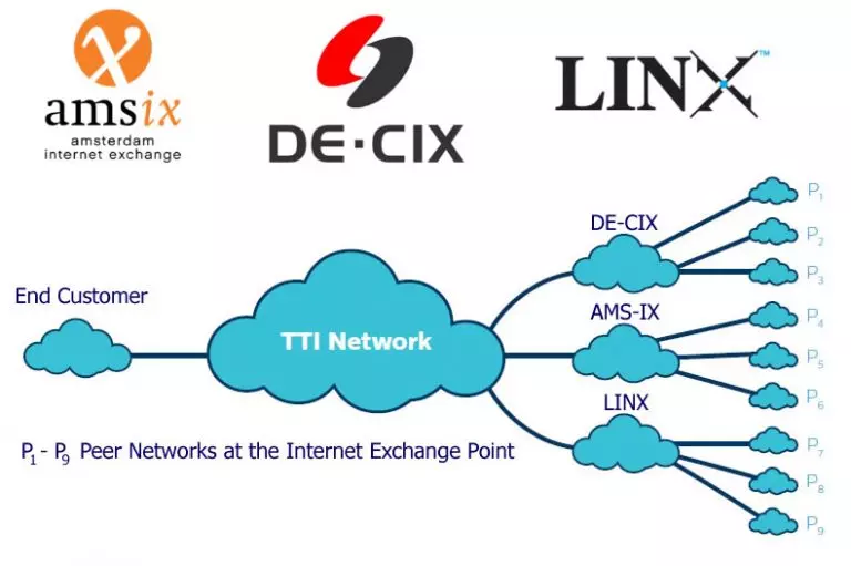 Müşteriler, trafiğin VLAN etiketleriyle tanımlandığı ve IX peering platformuna iletildiği Türk Telekom International MPLS çekirdek şebekesine bağlanır. Sanal Bağlantıların bant genişliği seçenekleri 100M, 250M, 500M, 750M, 1000M, 2500M ve 5000M'dir.